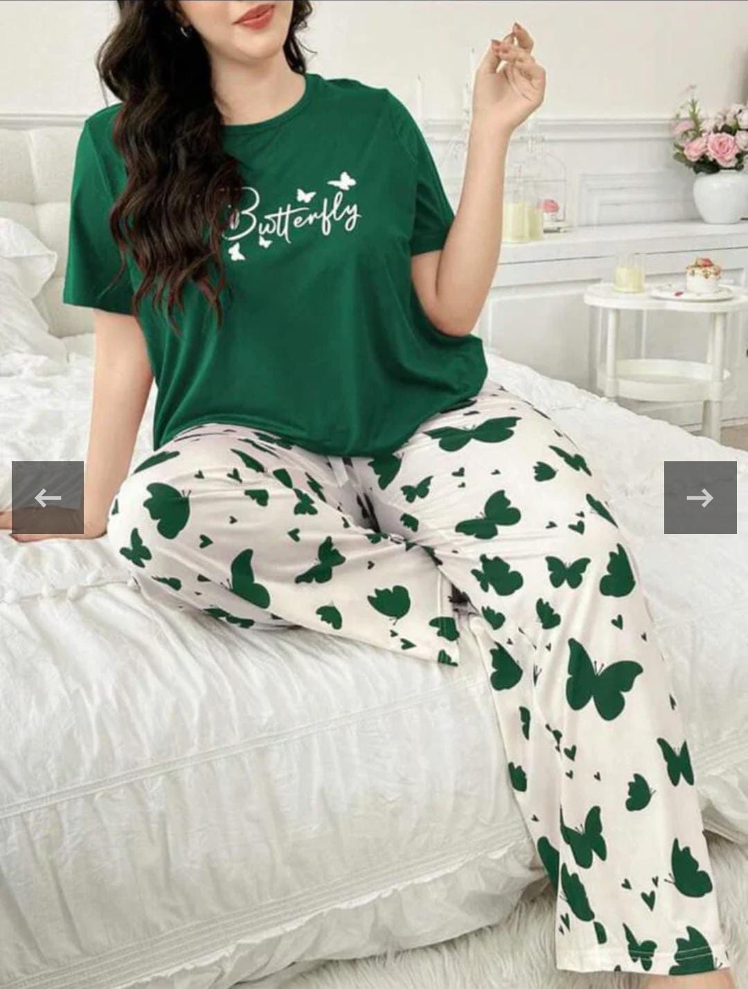 Green Butterfly Printed Pajama Set