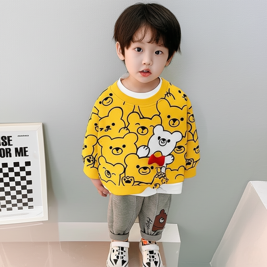 Yellow Bears Print Sweatshirt & Grey Trouser for Kids